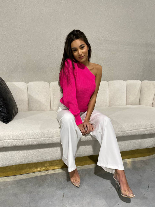 Faya one shoulder knit - Fuchsia